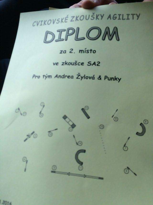 Dnešní podvečer ve Cvikově, Petra Urbanová s fenkou Fatalkou složila svou třetí zkoušku v A1 na V a umístily se na 1.místě vyběhaly si postup do A2. Andrea Žylová s fenkou Punky první start v A2 povedlo se složit zkoušku na VD a umístily se na 2.místě. Holky šikovné, gratuluji!!!